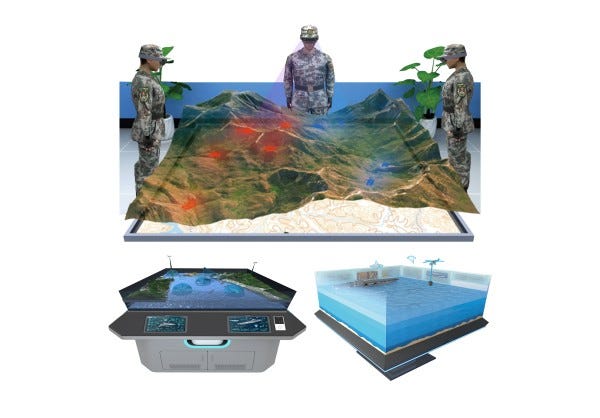 Qiantu Technology from Beijing provides a ‘War game simulation’ machine that can be used by armies to plan campaigns or singular operations, fed with past combat statistics and scenarios to see how it plays out.