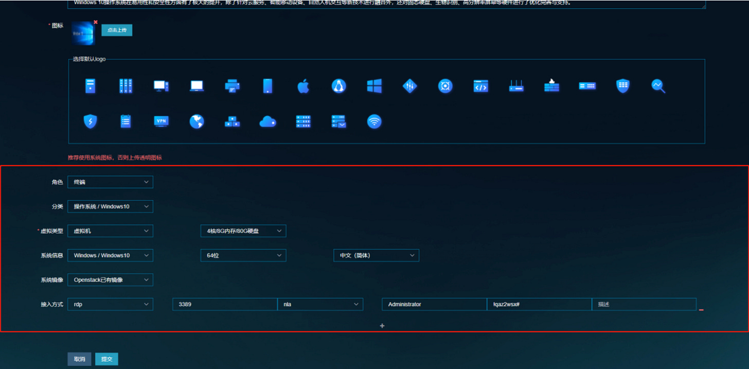 An Open Stack powered structure, run on top of CentOS, provides the framework for the Virtual Machines the operators connect to, to conduct the "tasks” and “missions". The VM's will be installed beforehand by copying OS installation packages directly to the host via ssh connections. It is a two stage process: 1. copying the VM installation package to the W-N directly 2. register the VM with the wider system.