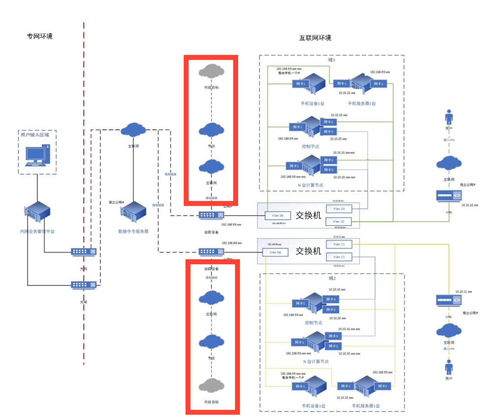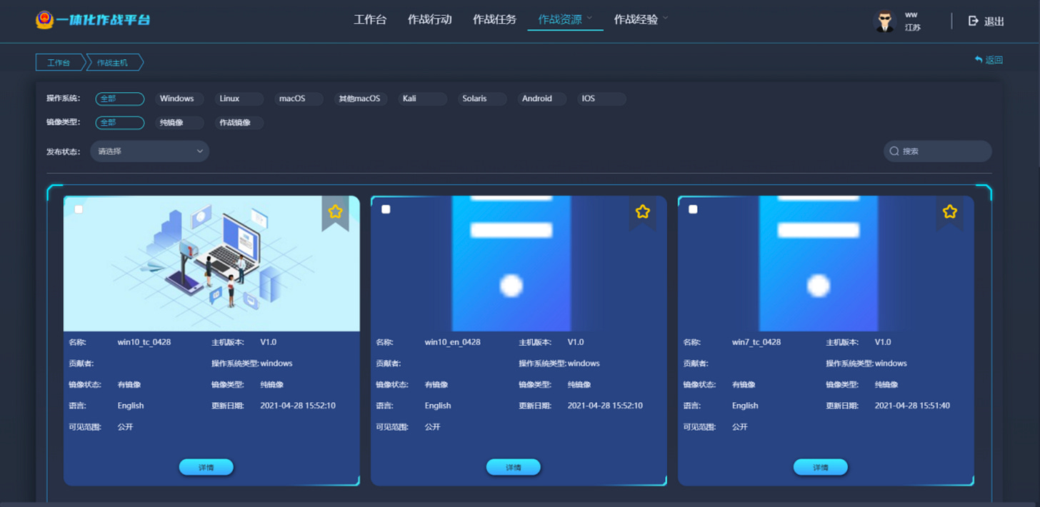 The W-N can stage several VM's, running Kali, Windows, MacOS, Solaris Linux etc. plus it can also provide Android phone environments. It doubles as master control node with admin functionality, that controls and supervises the Virtual Machines conducting tasks according to a scenario etc.