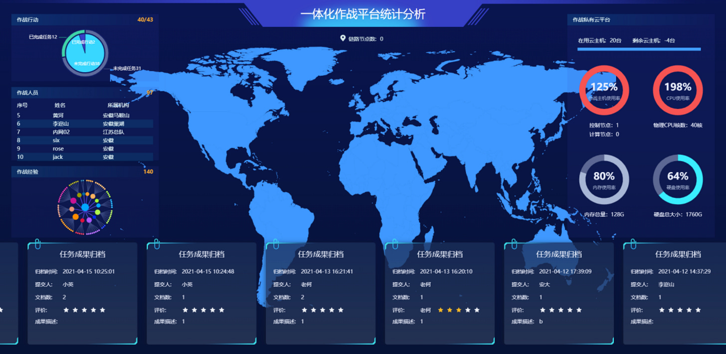 A world map presents an overview of ongoing missions and tasks, evaluation of all the operators, system overview and potential "link nodes” to give operators the potential to hide/reroute their attacks via a proxy ( see above ).