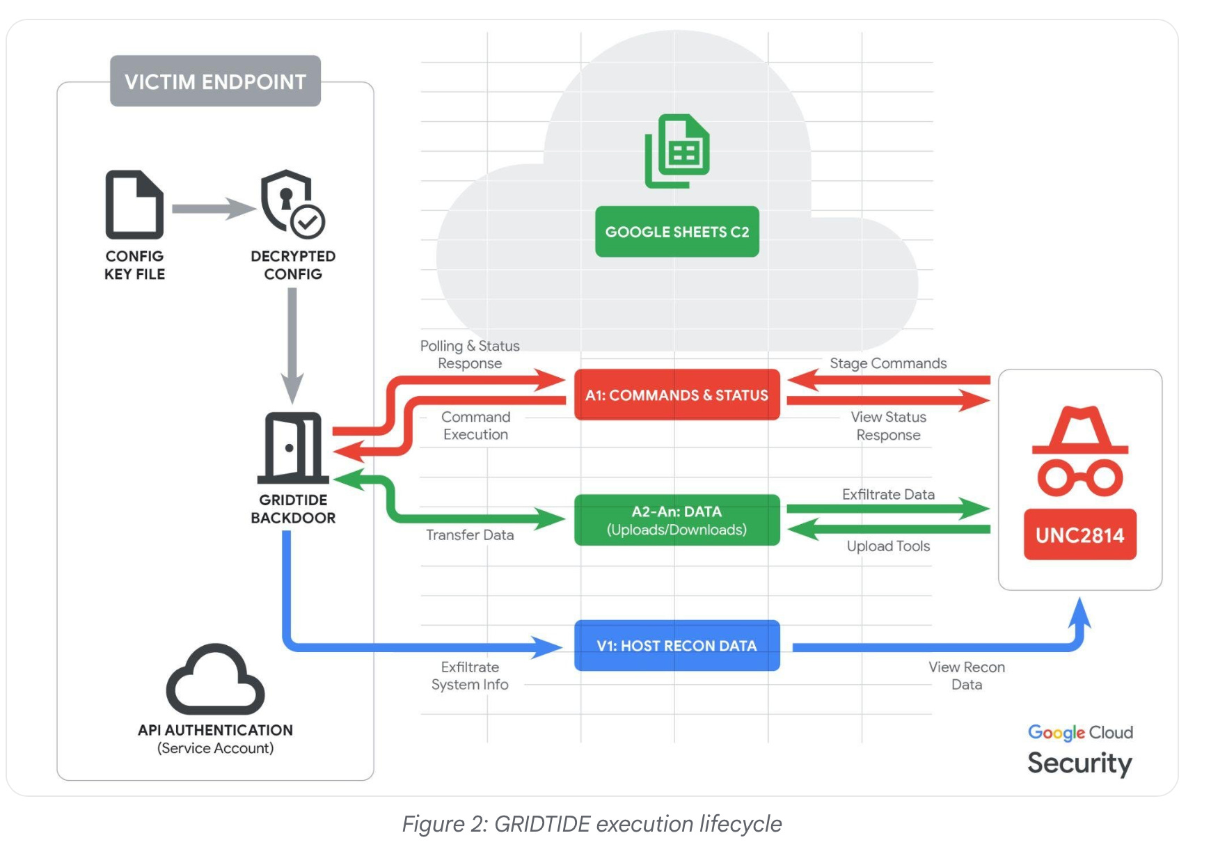 Based on operational traces, GTIG attributed the campaign to UNC2814 (also known as “Gallium”), a sophisticated but elusive Chinese APT group. While the report doesn’t specify how initial access was gained, it’s clear that Google Documents were repurposed as C2 infrastructure, bypassing automated network surveillance. GTIG and its partners named this backdoor “GRIDTIDE.” Data exfiltration occurred via SoftEther VPN, enabling operators to extract call records, monitor SMS traffic, and track individuals using methods typically reserved for law enforcement. The report offers few details on specific targets or countries, but it does mention 53 victims in 42 countries, with signs of infection in entities across 20 additional countries. This isn’t a targeted operation—it’s a dragnet.