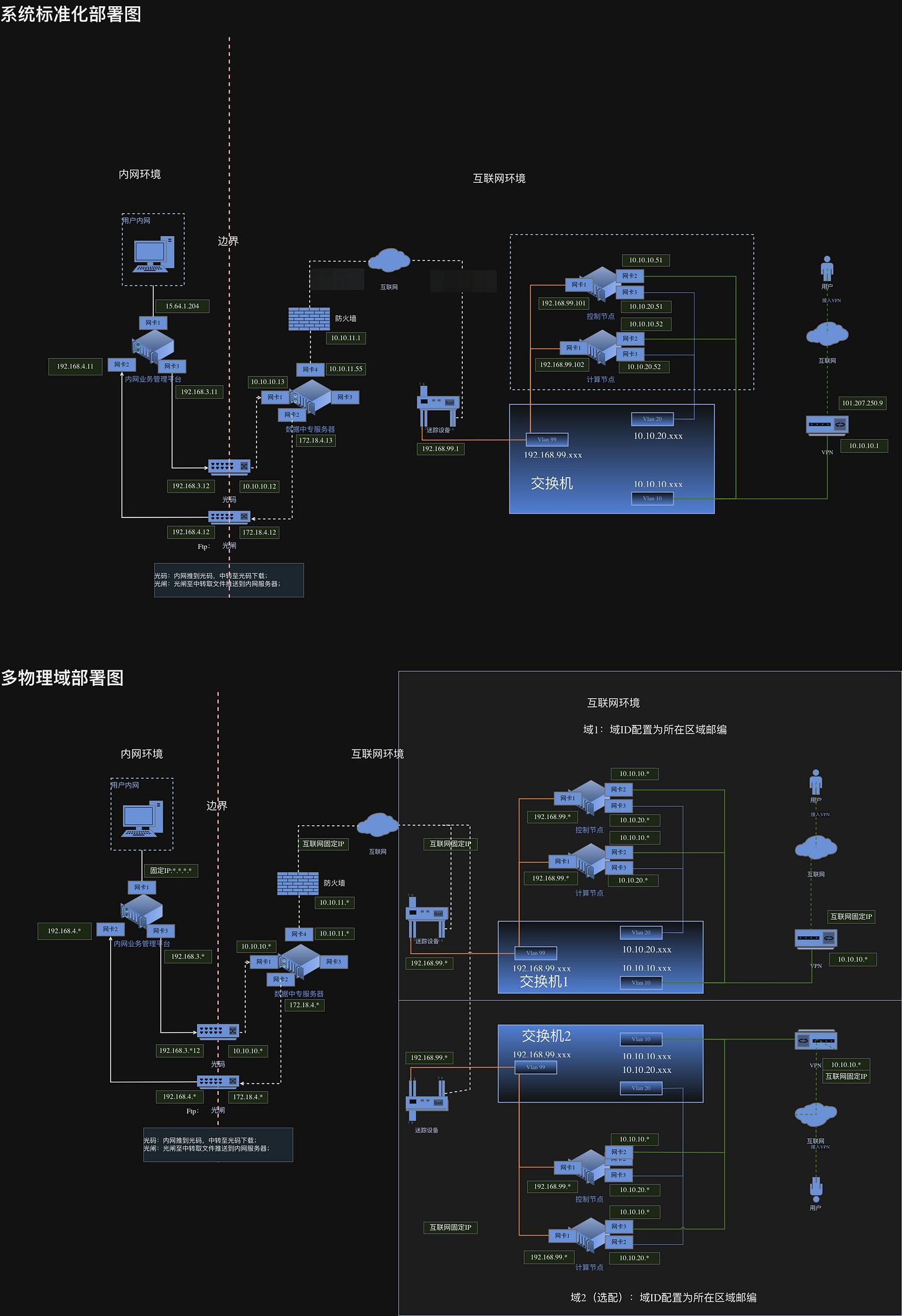 A detailed network layout shows clearly where this is all heading. We have two major sources that illustrate the overall network design: one from the “Installation Manual (安装部署手册)” and another from what appears to be an active UML diagram titled “Expedition Cloud Deployment Topology (远征云部署拓扑)”. Both describe the same system, but the latter provides a more granular view of a specific subsection within the larger architecture (see both below).