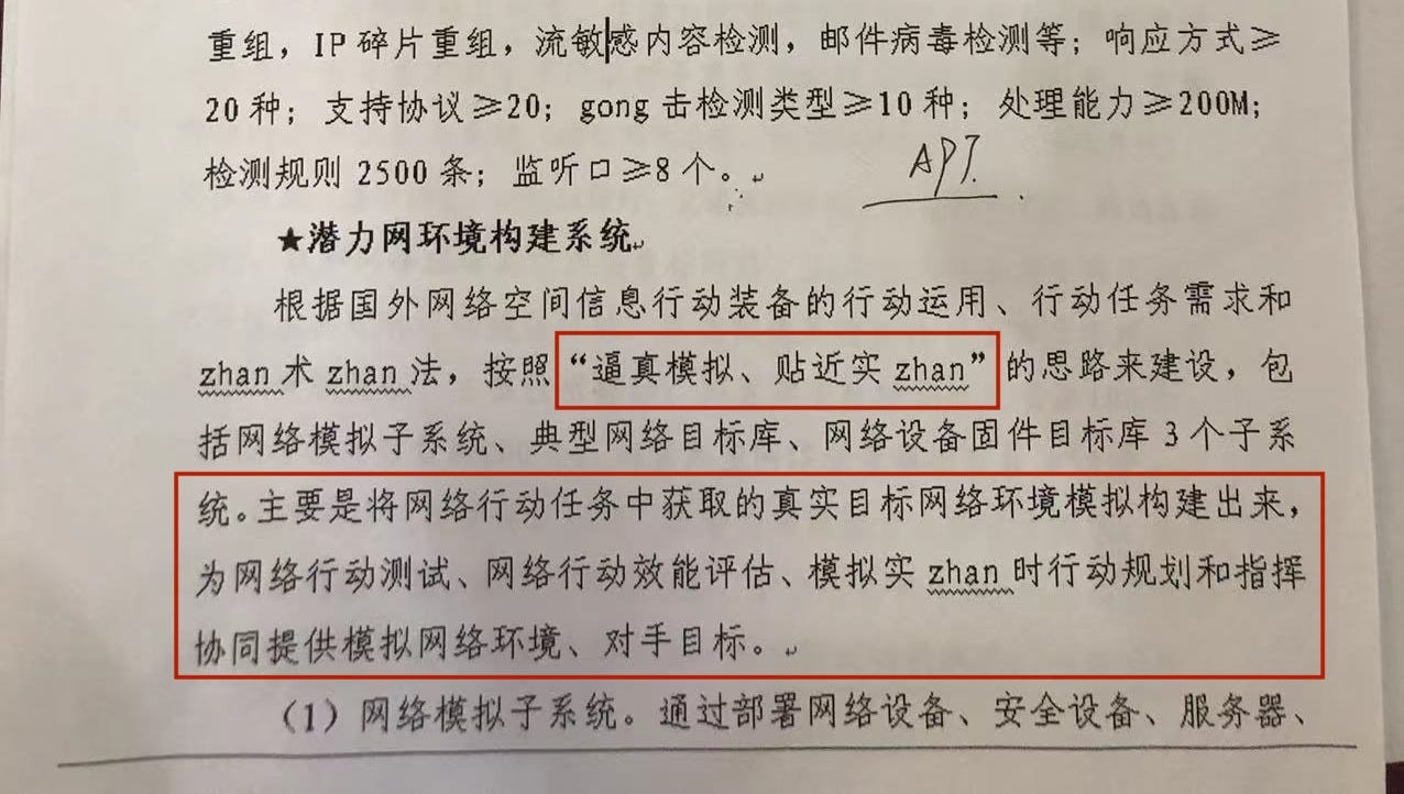 The system must record and monitor all traffic within its environment and between its components, and be able to identify network attacks and “malicious behavior.” It further states: “Based on operational applications, operational task requirements, and the technical methods of foreign cyberspace information action equipment, it is constructed according to the idea of realistic simulation and close to reality.”