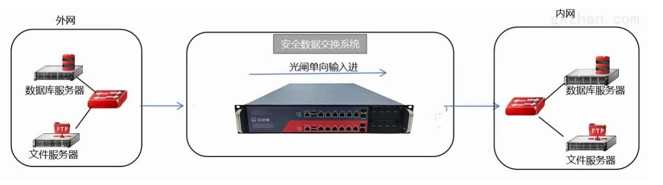 Data flowing from the I-N to the E-N is strictly controlled through “optical gates”, uni-directional data flow devices (an illustration of a possible device see below). This makes data extraction from the intranet significantly harder, even if the extra-net would be compromised.